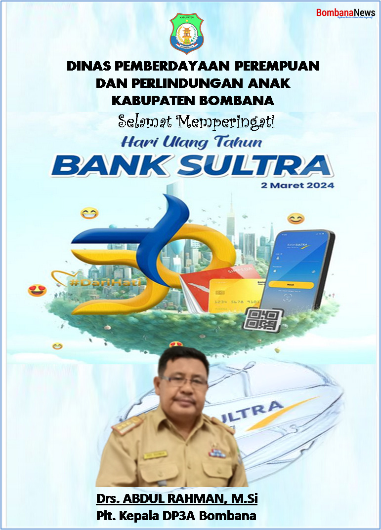 DP3A Kab. Bombana mengucapkan selama memperingati Hari Ulang tahun Bank Sultra yang Ke-56
